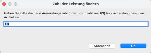 Doppelklicken Sie auf die Nummer der gewünschten Position, um den Dialog zur Mengeneingabe zu öffnen.