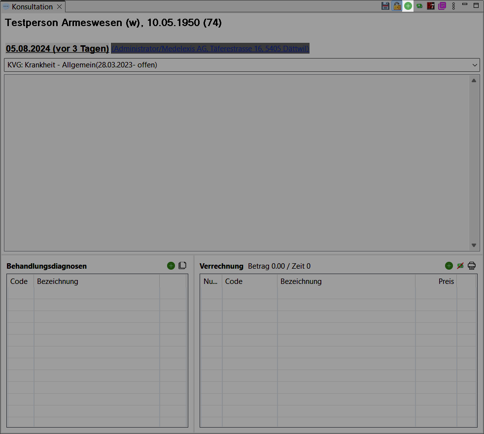 Daraufhin wird eine neue Konsultation erstellt, diese wird Ihnen automatisch angezeigt.