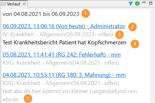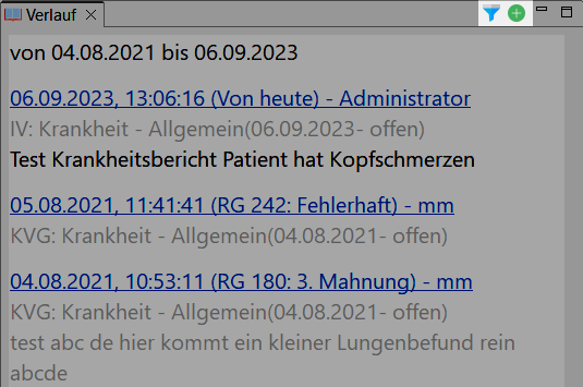 Die View Verlauf listet alle Einträge der bisherigen Konsultationen des Patienten.
