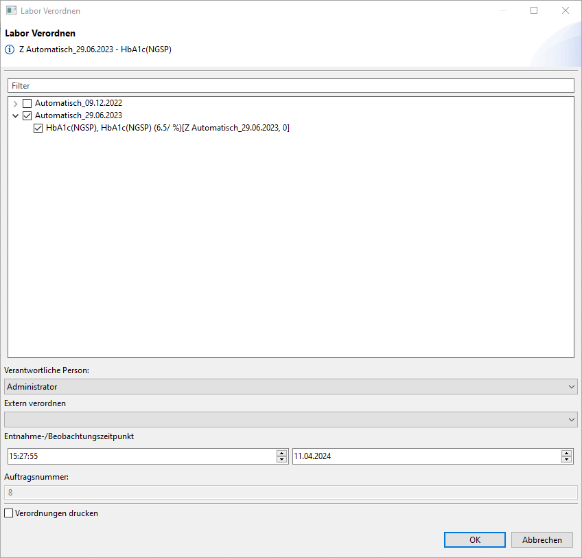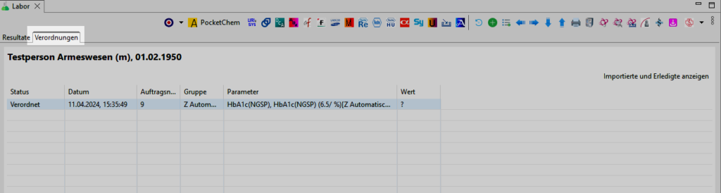 Icon, um dann den gewünschten Parameter zu verordnen. Es kann der Entnahme- und Beobachtungszeitpunkt definiert werden.
