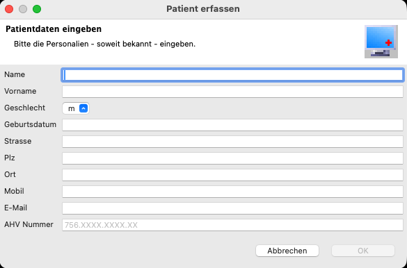 Anschliessend können alle bekannten Informationen vom Patienten eingetragen werden.