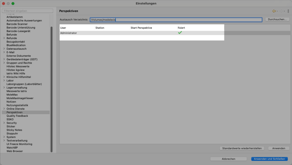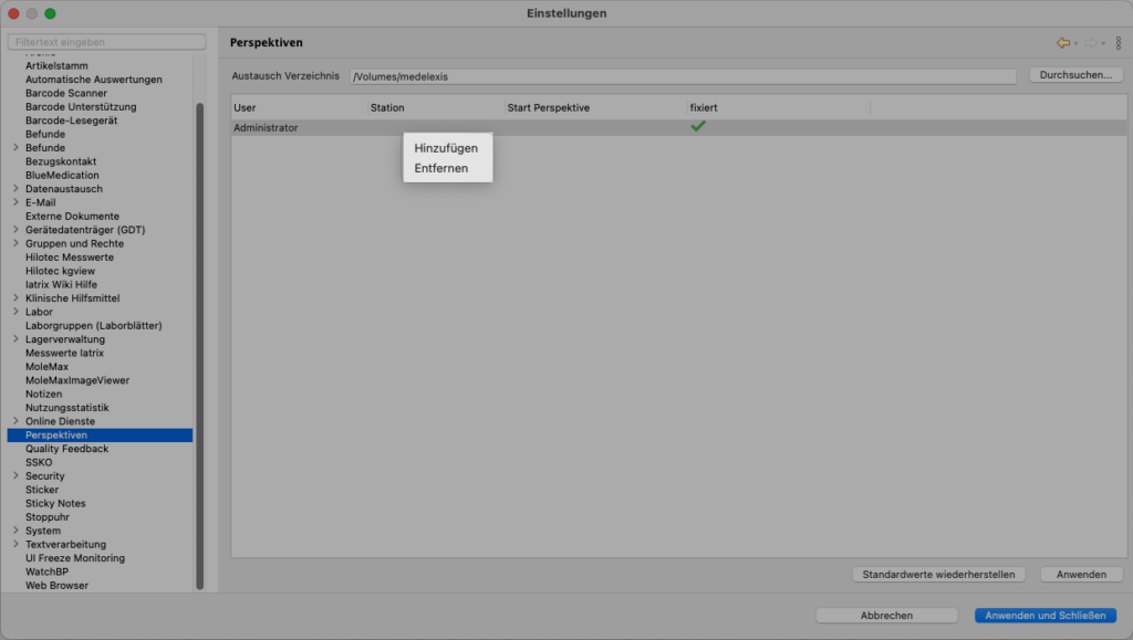 Klicken Sie auf Durchsuchen und wählen Sie ein globaler Pfad der jeder User in der Praxis zugriff hat beispielsweise Ihr Praxisnetzlaufwerk. Auf diesem Pfad werden Ihre zukünftigen Perspektiven aus dem Elexis abgespeichert.