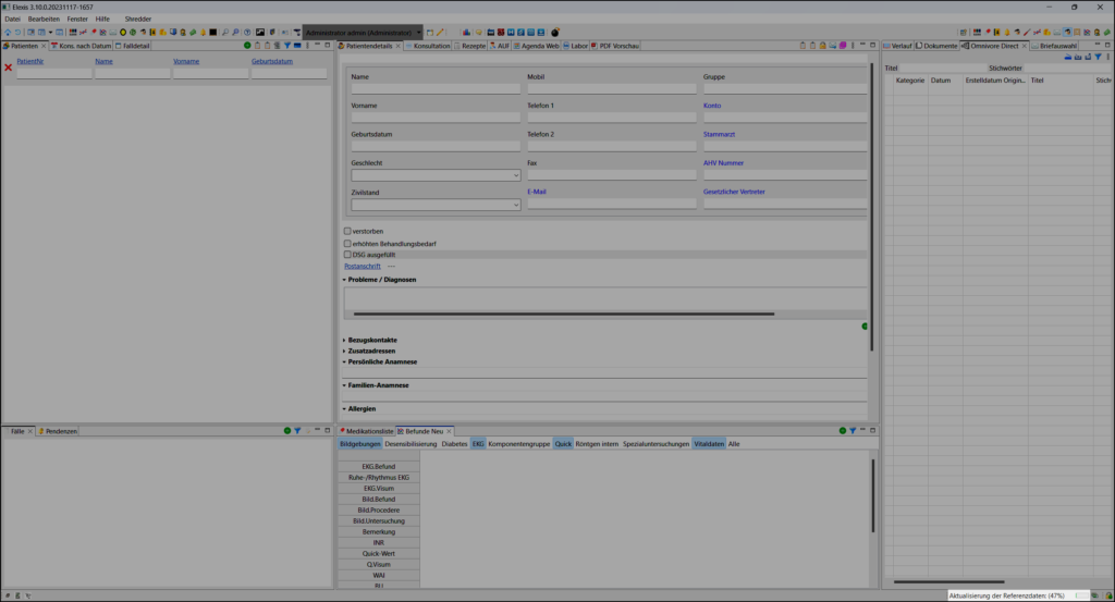 Über die Referenzdaten stellen wir regelmässige Aktualisierungen für wichtige medizinische und administrative Daten zur Verfügung. Dazu gehören nicht nur Medikamenteninformationen, sondern auch zahlreiche Tarif- und Leistungskataloge, die für den täglichen Praxisbetrieb essenziell sind. Über die Funktion Referenzdaten aktualisieren werden unter anderem folgende Daten automatisch auf den neuesten Stand gebracht: