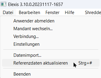 Rechts oben im Elexis unter Datei, Referenzdaten aktualisieren öffnet sich ein weiterer Dialog.