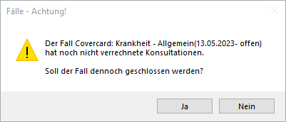 Der Fall (Name) hat noch nicht verrechnete Konsultationen. Soll der Fall dennoch geschlossen werden?
