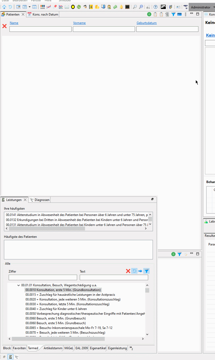 Ab Version 3.12 kann die Gültigkeit einer Tarmed-Leistung direkt in der View Leistungen überprüft werden. Dafür muss ein Rechtsklick auf die gewünschte Position getätigt werden und Leistungen Details ausgewählt werden.