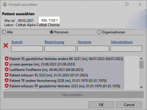 Wird ein Laborbefund in Elexis importiert und der Patient ist unbekannt, so wird die Patienten ID angezeigt.
