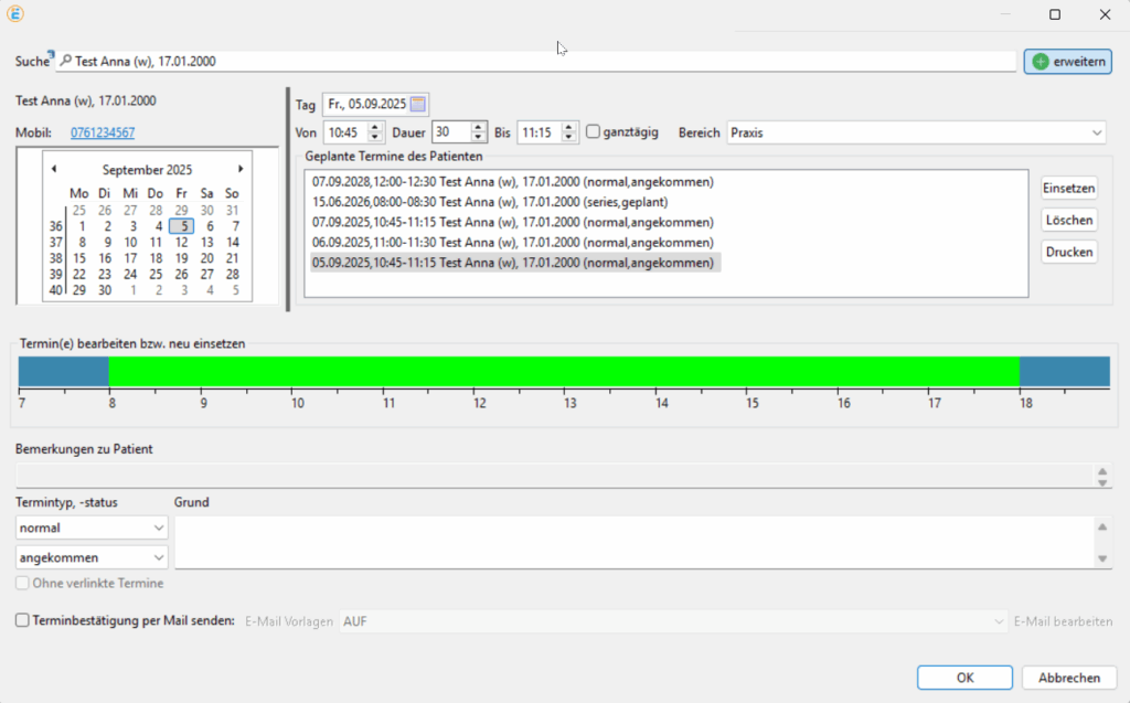 - Die Telefonnummern in den Patienteninformationen können angeklickt werden, damit diese automatisch im Telefonprogramm gewählt werden. (Setzt ein entsprechendes Telefonsystem voraus)